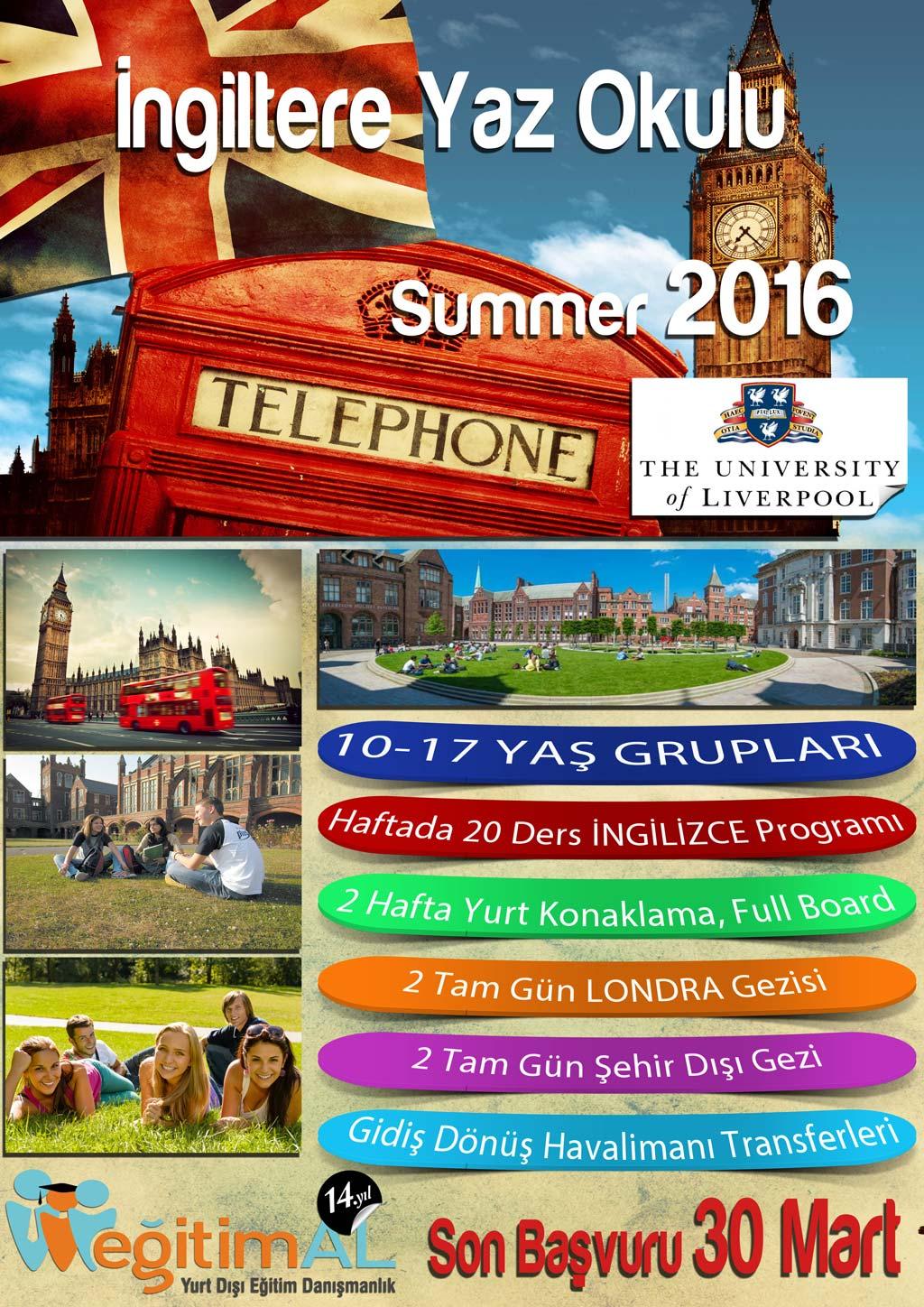 Bu sene planladığımız yurt dışı gezimiz; İngiltere - Liverpool kenti University of Liverpool Kampüsünde yapılacaktır. Öğrencilerimizin keyifli bir yaz tatili geçirebileceği ve dil eğitimi alabileceği University of Liverpool, şehir merkezine 20 dakika, Londra’ya ise 2 saat uzaklıktadır.