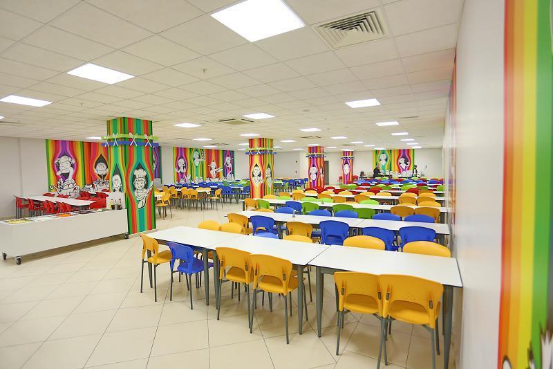 Mutfak ve yemekhane: B1. Kattadır. Anasınıfı ve 1. sınıfta öğrencilerimiz sabah kahvaltısı, öğle yemeği ve ikindi kahvaltısı hizmetinden yararlanırken, ikinci sınıftan itibaren tüm öğrencilerimizde öğle yemeği ile ikindi kahvaltısından yararlanmaktadırlar. İkindi kahvaltısının amacı öğrencilerimizin kantine yönelmelerini önlemek ve obezite ile mücadele etmektir. Mutfak ve yemekhane önemsediğimiz alanlarımızdandır. Mutfağımızda bulunan yemek, pasta, soğuk hava, kuru gıda depolarımız dâhil tüm alanlar, modern ve üst düzeyde hijyenin sağlandığı bölümlerimizdir. Kontrolümüz dışında hiçbir yiyeceğin (hazır gıda) öğrencilerimize sunulmasına izin vermemekteyiz. O nedenle de yemekleri kendi mutfağımızda kendi aşçılarımız pişirmektedirler. Tam zamanlı çalışan gıda uzmanımız ve alanında uzman yöneticilerimiz mutfakta üretilen her yiyeceği öğrencinin servis tabağına konulana kadar denetlemektedirler. Gıda uzmanımız tarafından gıda kalori hesapları da özenle yapılmaktadır.