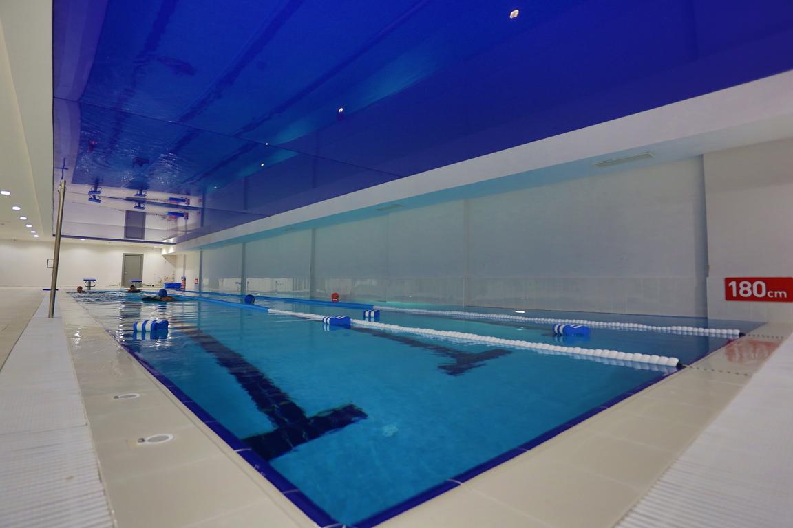 Yüzme havuzu: B2. Kattadır. Yarı olimpik olup 3 kulvarlıdır. Antalya okullarında yerden teras ısıtması olan tek havuzdur. Bir tarafında erkek öğrenciler için, diğer tarafında da kız öğrenciler için olmak üzere duş bölümleri, soyunma odaları bulunmaktadır. Her iki tarafta da öğrencilerin duş almalarına, soyunma ve giyinmelerine yardımcı olan görevliler bulunmaktadır.